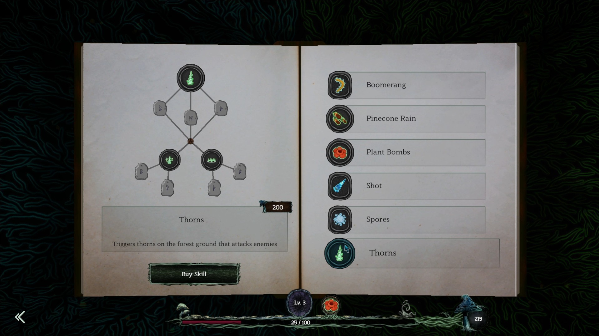 Gather mushrooms to awaken the forest’s power! Thorn strike, spores burst, and nature fights beside you. Strengthen yourself and the forest to unleash devastating synergy attacks, evolving or unlocking new abilities for unique builds and powerful combinations.